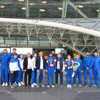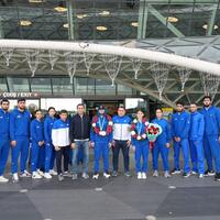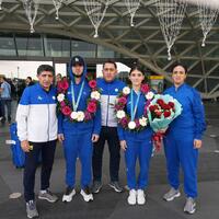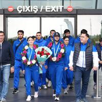 Taekvondo üzrə uğurla təmsil edən milli komandamızın üzvləri Vətənə dönüb - FOTOLAR