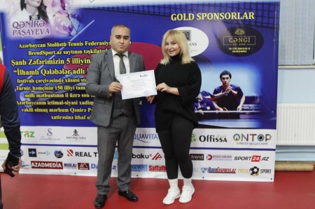 Azərbaycan Stolüstü Tennis Federasiyasının və BrendSport.az saytının təşkilatçılığı, “Azertrans” MMC-nin dəstəyi ilə Şanlı Zəfərimizin 5 illiyinə həsr olunmuş “İlhamlı Qələbələr adlı Böyük Qayıdış" festivalı çərçivəsində xüsusi stolüstü tennis turniri keçirilmişdir. SİA xəbər verir ki, turnir “Cəngi Spa, Fitness, İdman Klubu və Sağlamlıq Mərkəzi” və “Renessans Baku” MMC-nin Gold sponsorluğu, həmçinin Araz Marketlər Şəbəkəsi, Gənclik Mall "ONTOP Bowling" Mərkəzi, Türkiyədən gətirilən yüksək keyfiyyətli xalça brendi "Natural Halı", sərinliyin dadı "Full Tea", “Azerçay”, "Hoqqo" sərinləndirici içkiləri, "AquaVita", "Sahdağ" suları, "Gülüstan limonadları", "Offissa Dizayn" ofis mebelləri və Azadlıq prospekti 92-də yerləşən "Skalzioni" İtaliya brendinin sponsorluğu ilə baş tutmuşdur.