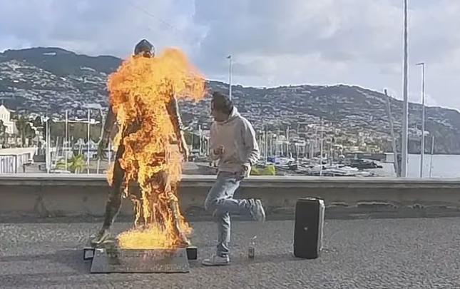 Portuqaliyalı ulduz futbolçu Kriştiano Ronaldonun Madeyra adasındakı heykəli yandırılıb. "Dailymail" nəşrinin məlumatına görə, naməlum şəxs futbolçunun bürünc heykəlinin üzərinə yanıcı maddə tökərək od vurub. O, bu anları videoya çəkib və alovlar heykəli bürüyərkən rep musiqisi sədaları altında rəqs etməyə başlayıb.