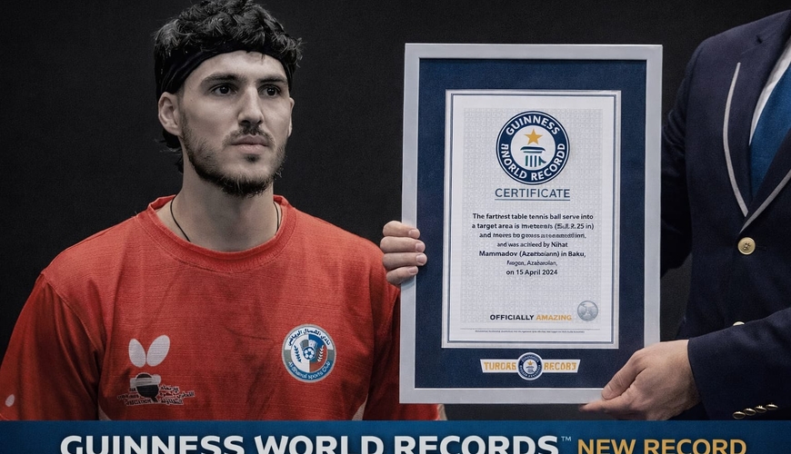 Azərbaycanlı idmançı adını "Ginnesin Rekordlar Kitabı"na yazdırıb. Belə ki, seçmə komandamızın üzvü, stolüstü tennisçi Nihad Məmmədov "Şüa İdman Kompleksi"ndə rekorda imza atıb. O, topu uzaq məsafədən oyuna daxil etməkdə qeydə alınan dünya rekordunu yeniləyib.