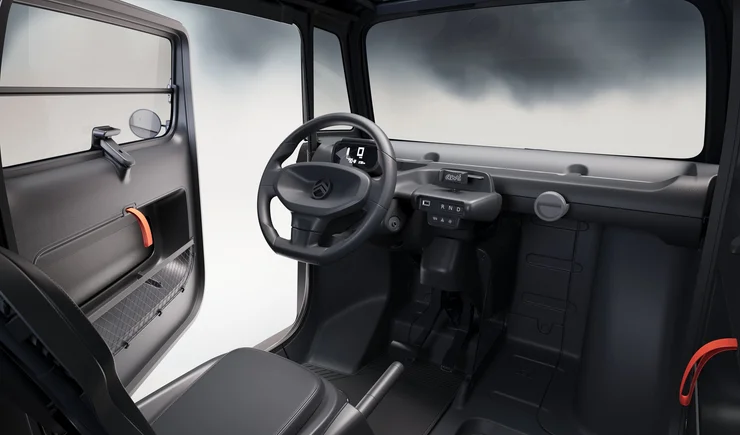Citroen Ami-nin interyeri əksər komplektasiya səviyyələrində tünd rəngdədir. İçəridə əlavə saxlama böl