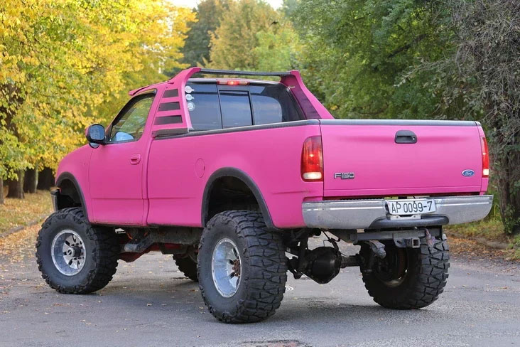 …Sövdələşmə 2023-cü ildə baş tutdu. Qadın qiyməti açıqlamayacaq. Bu gün eyni modeldə və orijinal rənglənmə ilində (1997) olan bir pikapı 20.000 dollara tapmaq olar. …Maşın qara və qırmızı rəngdə idi və üzərində kəllə sümükləri var idi. Bu görünüşü bəyənmədim. Bir gün ağlıma bir fikir gəldi: "Fordu çəhrayı etsəydim necə olardı?" Beləliklə, onu Raptor boyasına boyadım! Rəngsazın dediyi kimi, yük maşını indi məxmər çəkmələrə bənzəyir. Qiyməti 2500 dollardır. Maşının kapotunun altında 231 at gücü istehsal edən 4,6 litrlik benzinli V8 mühərriki var.