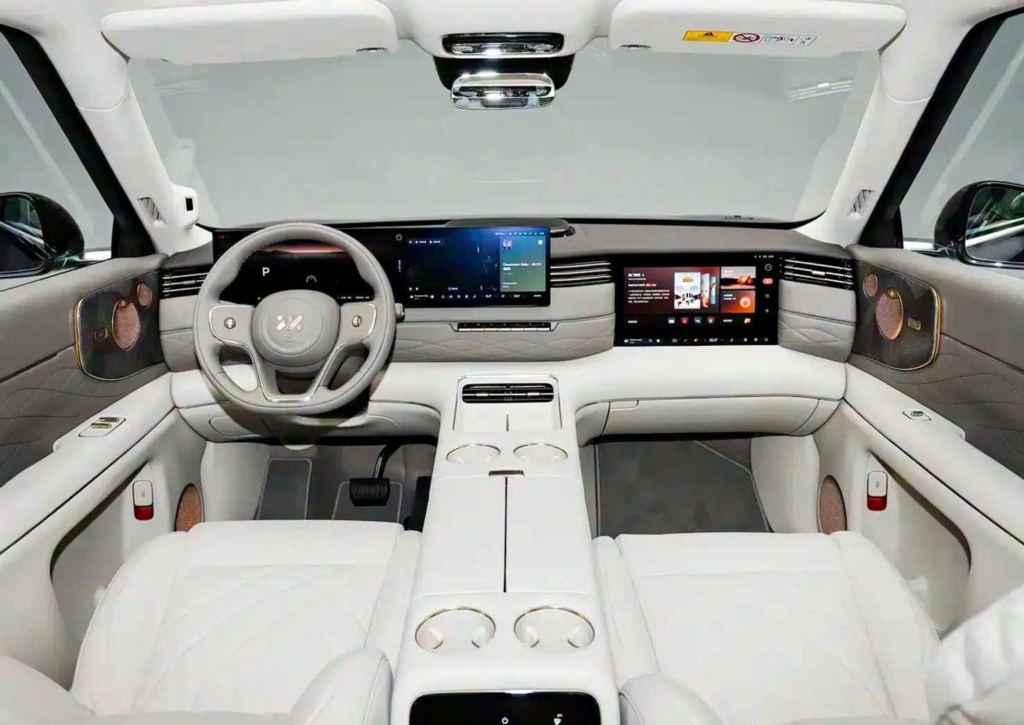 IM LS9-un salonunda sürücü üçün böyük 27,1 düymlük ekran və sərnişin üçün daha kiçik 15,6 düymlük ekran var.