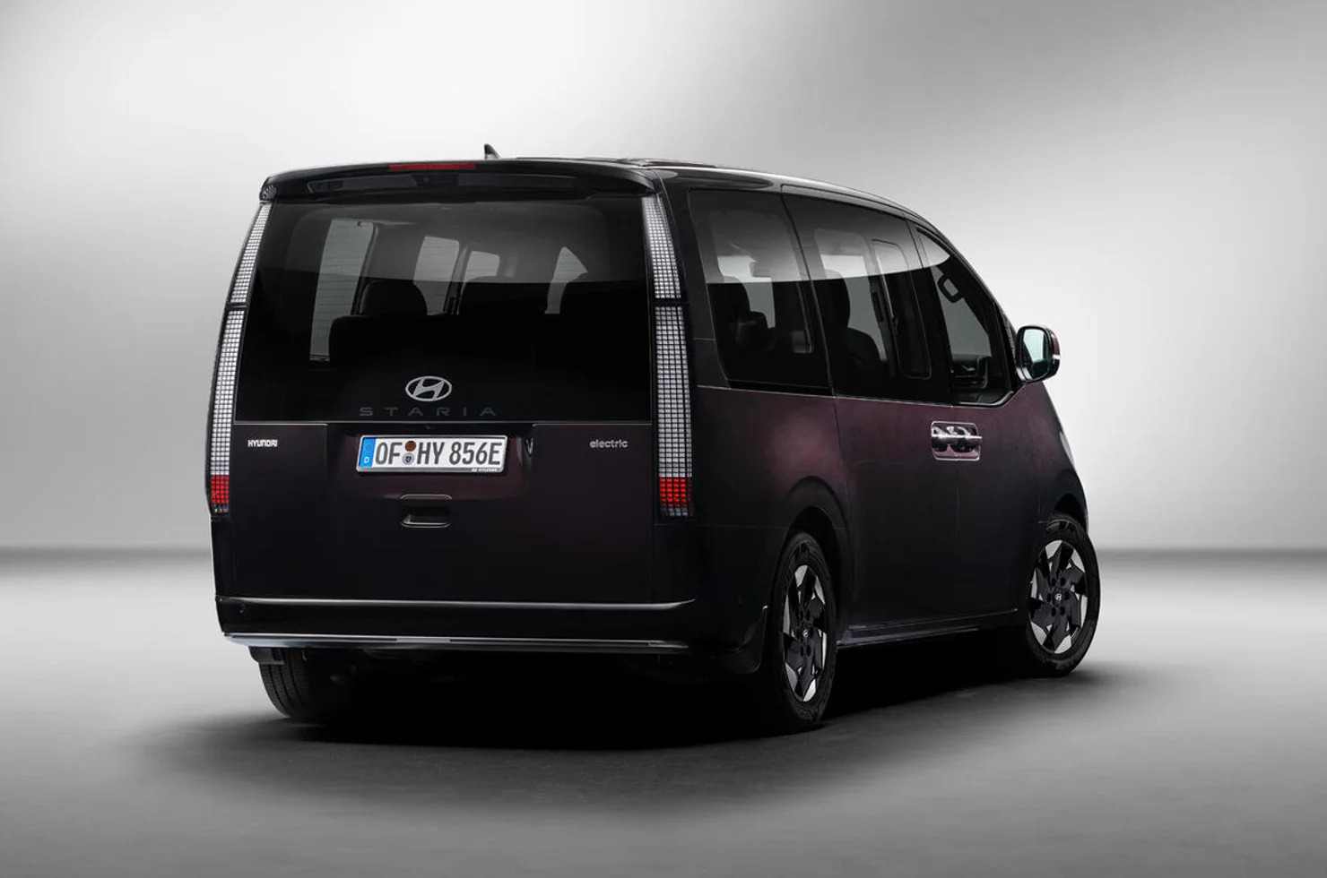 Elektrik modeli futuristik dizaynını qoruyub saxlayır və yenilənmiş benzinlə işləyən Hyundai Staria-dan yalnız doldurma portu ilə ön hissədə fərqlənir.
