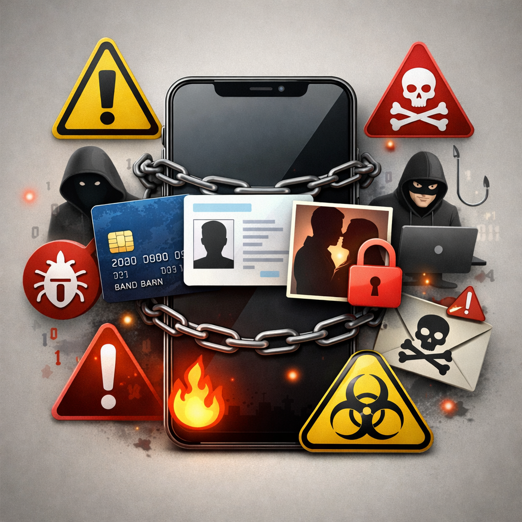 Zərərli proqramlar və hacker hücumları: Malware və spyware tətbiqləri telefonunuza gizli yüklənərək foto, sənəd və mesajlarınıza giriş əldə edə bilər.