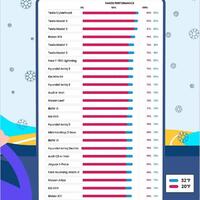 Tesla Model S müvafiq olaraq 87 faiz və 82 faiz ilə ikinci yeri tutdu.