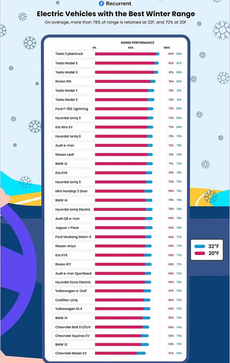 ...Genişmiqyaslı qış sınağında otuzdan çox müasir elektrik avtomobili iştirak etdi. Onların məsafəsi mənfi temperaturda sınaqdan keçirildi. Sirr deyil ki, elektrik avtomobillərinin məsafəsi mənfi temperaturda əhəmiyyətli dərəcədə azalır.
