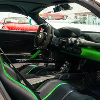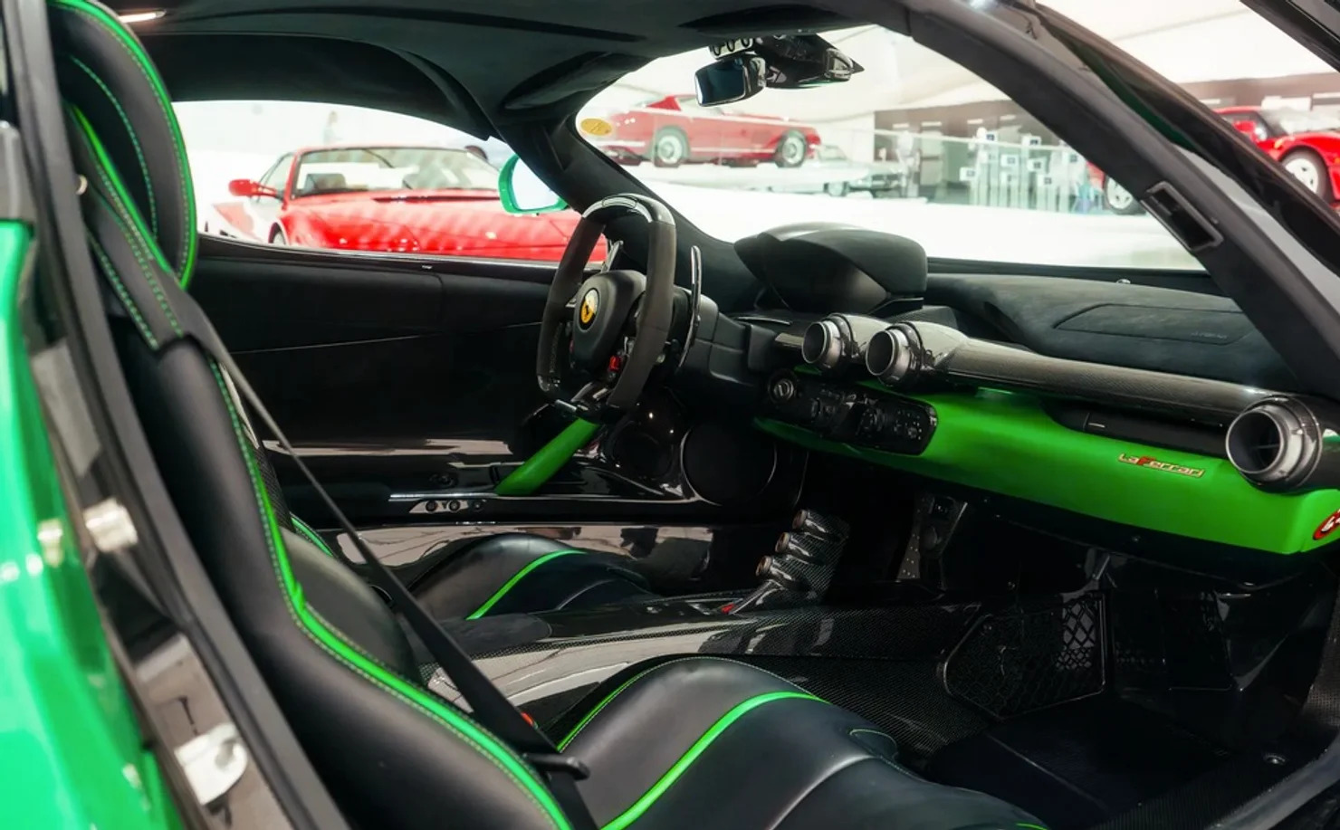 Ferrari-nin interyeri qara və yaşıl dəri ilə örtülüb.