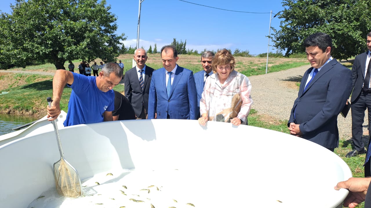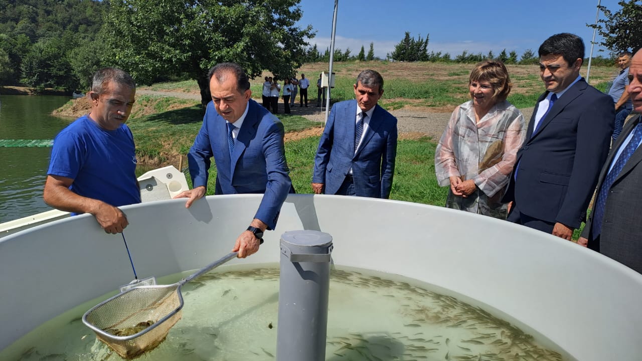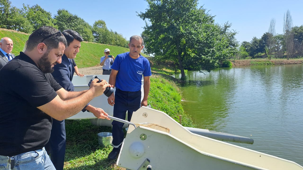 Sonda yeni salınan gölə tədbir iştirakçıları tərəfindən balıq körpələri buraxılıb.
