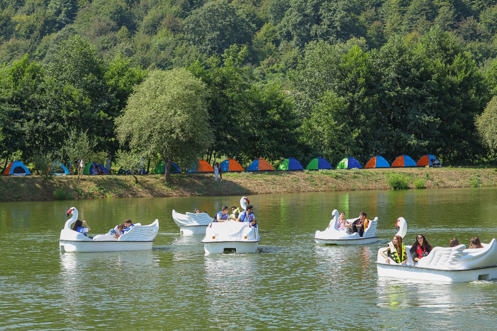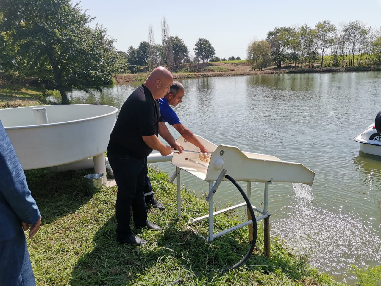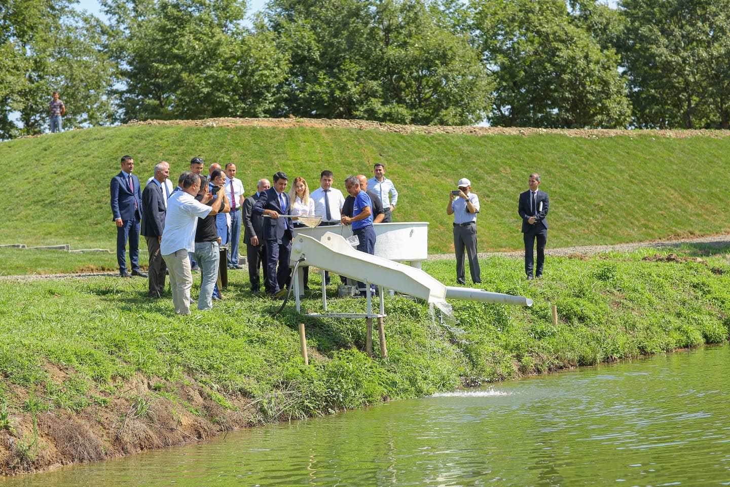 Sonda yeni salınan gölə tədbir iştirakçıları tərəfindən balıq körpələri buraxılıb.