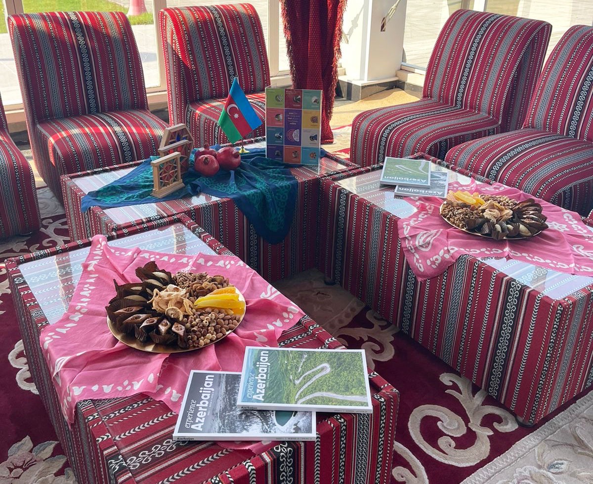 Sammit çərçivəsində keçirilən sərgidə Azərbaycanın turizm potensialını əks etdirən broşürlər, milli şirniyyatlarımızdan nümunələr ziyarətçilərə təqdim olunub.
