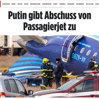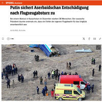 Almaniyanın nüfuzlu media orqanları Rusiya Prezidenti Vladimir Putinin Düşənbədə Azərbaycan Prezidenti İlham Əliyev ilə görüşdə “Azərbaycan Hava Yolları” QSC-nin (AZAL) təyyarəsinin qəzaya uğramasına görə Rusiya hava hücumundan müdafiə qüvvələrinin məsuliyyət daşımasını ilk dəfə etiraf etməsindən yazıb. SİA xəbər verir ki, “Spiegel”, “Zeit”, “Bild”, “Tagesschau”, “Tagesspiegel”, “Frankfurter Allgemeine” və s. media qurumlarının yaydığı xəbərlərdə Rusiya Prezidentinin həlak olanların ailələrinə kompensasiya ödəniləcəyinə dair zəmanət verdiyi xüsusi vurğulanıb. Eləcə də Vladimir Putinin iş üzrə istintaqın başa çatmaq üzrə olduğunu, məsələ ilə bağlı bütün zəruri addımların atılacağını və məsul şəxslərin hərəkətlərinə hüquqi qiymət veriləcəyini bildirdiyi qeyd olunub.