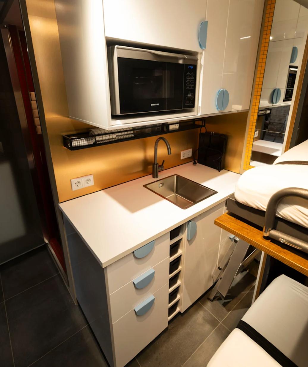 16 kvadratmetrlik prototip konstruksiya 20 santimetr qalınlığında divarları olan polad dəmir-betondan hazırlanıb. İçəridə bir həftəlik müstəqil yaşayış üçün lazım olan hər şey var: dörd qatlanan çarpayı, tualet, duş, mətbəx və pəncərədən mənzərəni simulyasiya edən ekran…