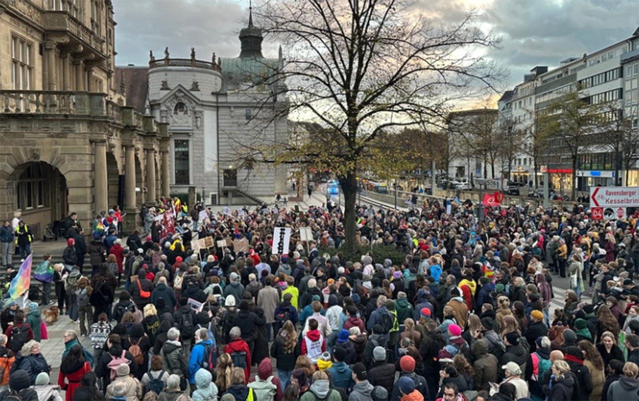 Belə ki, oktyabrın 24-ü axşam saatlarında şəhər sakinləri küçələrə axışıblar. Sağlara Qarşı Bielefeld Alyansı insanları “Biz şəhərin simasıyıq!” şüarı altında keçirilən bu etiraz aksiyasında iştirak etməyə çağırıb. Bu, Mertsin Almaniyanın şəhər imici və immiqrasiya siyasəti ilə bağlı son açıqlamalarına işarə edir.
