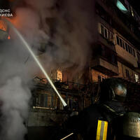 Onun sözlərinə görə, zərərsizləşdirilən dron paytaxtın Desnyansk rayonunda doqquzmərtəbəli binanın ikinci mərtəbəsinə düşüb. Bir neçə mənzil yanıb, yanğın dördüncü və yeddinci mərtəbələrdəki eyvanlara keçib. Artıq yanğın söndürülüb.