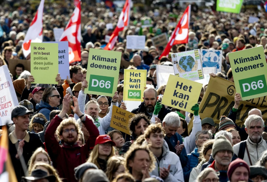 Niderlandda on minlərlə insan iqlim siyasətinin gücləndirilməsi tələbi ilə aksiya keçirib