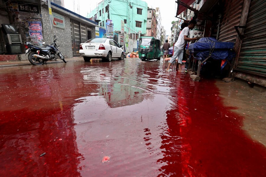 İranda üç ay ərzində yağış yağmayan uzun sürən quraqlıq nəticəsində torpaqdakı dəmir oksid konsentrasiyası artıb. Buna görə də yağışlar başladıqdan sonra su və torpaq qırmızıya çevrilib.