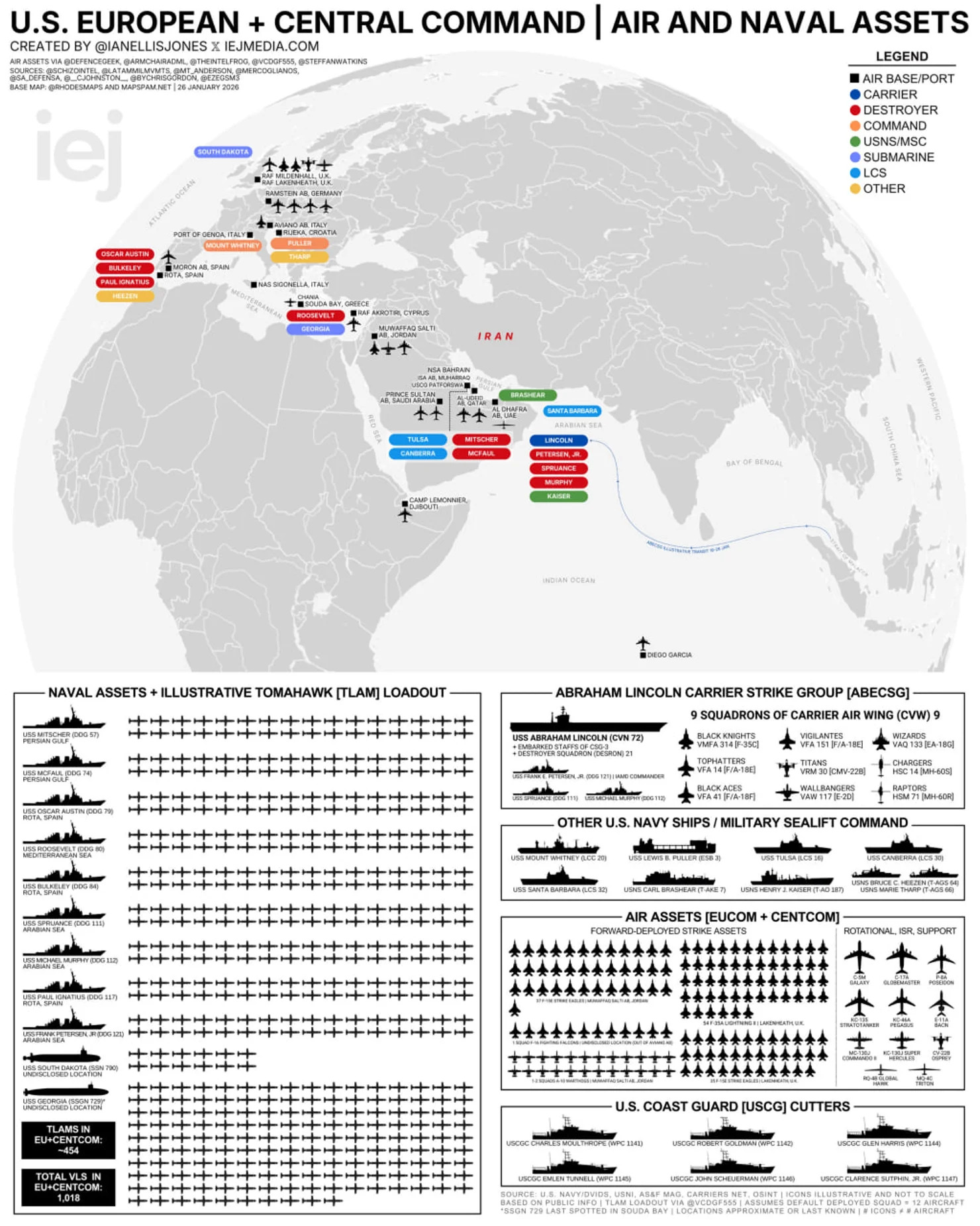 ...CBS News-un məqaləsinə görə, ABŞ prezidenti Donald Tramp hələ İrana zərbə endiriləcəyi dəqiq vaxt barədə qərar verməyib, lakin Aralıq dənizi və Hind okeanındakı hərbi qüvvələr zərbə mövqeləri tutaraq hərəkətə keçməyə hazırdır. Hücumun 21 fevralda baş tutacağı gözlənilir, lakin bu təxirə də salına bilər.