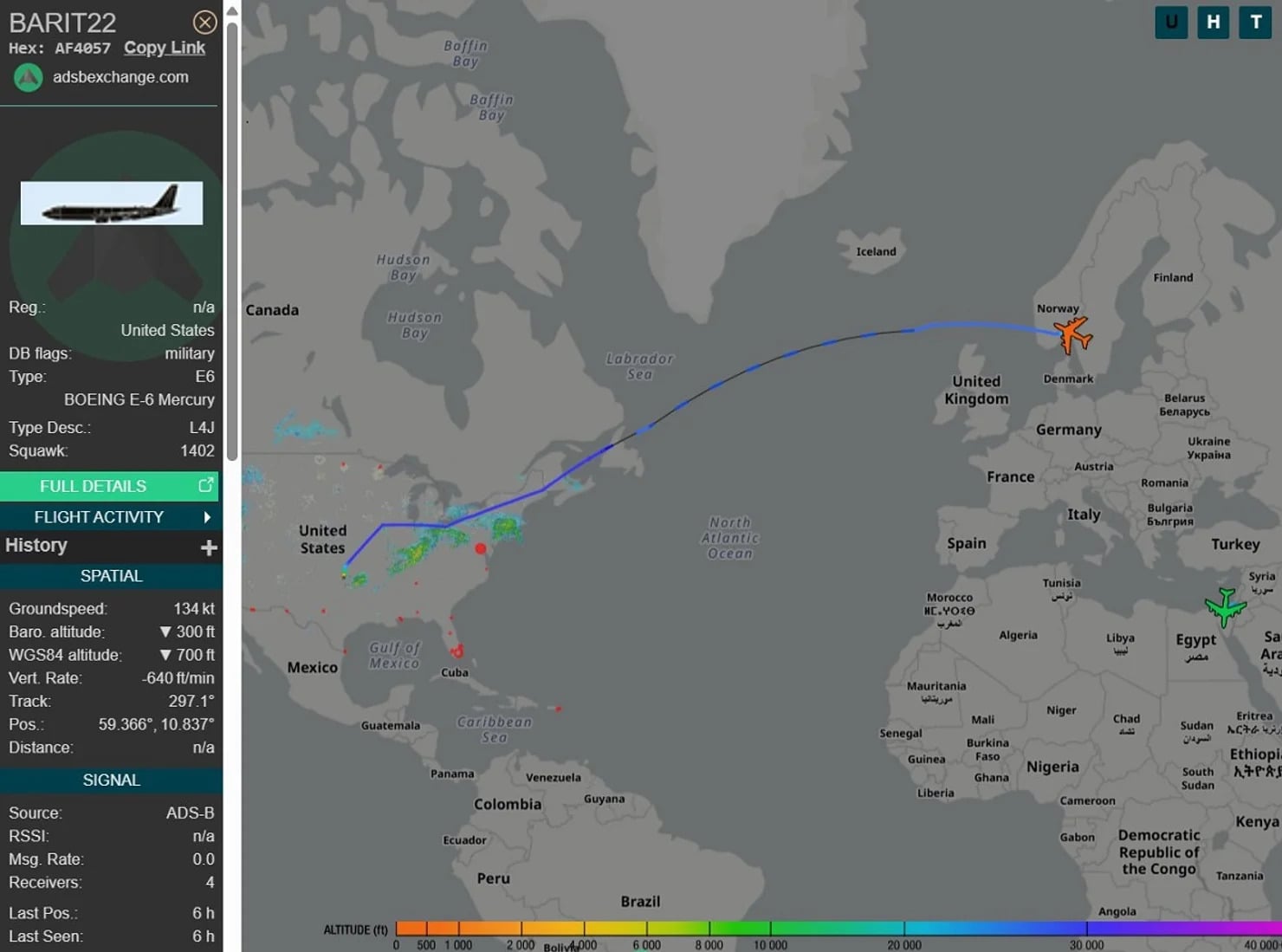 Şərhçilər əvvəlcə "Qiyamət təyyarəsi"nin Yaxın Şərqə doğru getdiyini ehtimal edirdilər, lakin Misirin Intel Observer qəzeti daha sonra E-6 Mercury-nin sonda Norveçə eniş etdiyini bildirib.