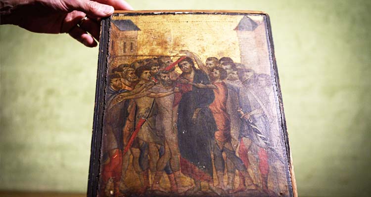 The painting is thought to be part of a large diptych dating from 1280 when Cimabue painted eight scenes depicting Christ's passion and crucifixion.