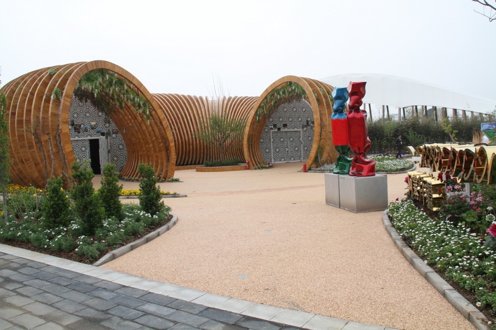 Azerbaijan`s participation was supported by the Heydar Aliyev Center and the Ministry of Ecology and Natural Resources. The national pavilion, called "Azerbaijan: Harmony of Nature and Art", featured a unique interior design demonstrating the customs and traditions of the country. The spiral shape of the pavilion symbolized Azerbaijan’s steady, stable development and dynamics.