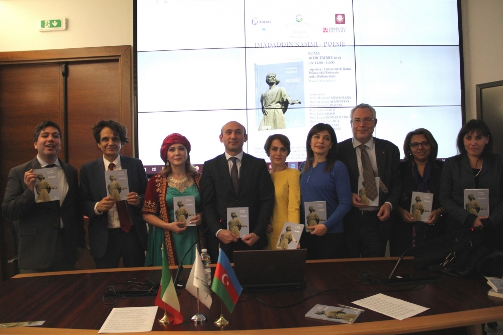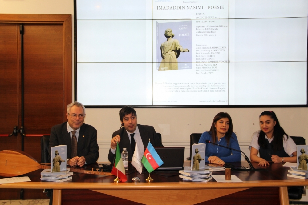 On 9 December, the first event regarding the presentation of the newly translated book into Italian named “Nasimi Poetry”, was organized by the International Turkic Culture and Heritage Foundation with the support of the Azerbaijani Embassy in Italy, University of Naples "L'Orientale" and the Italian publishing house Sandro Teti. The event was attended by the professors and students of the University, as well as urban scientific and cultural circles.