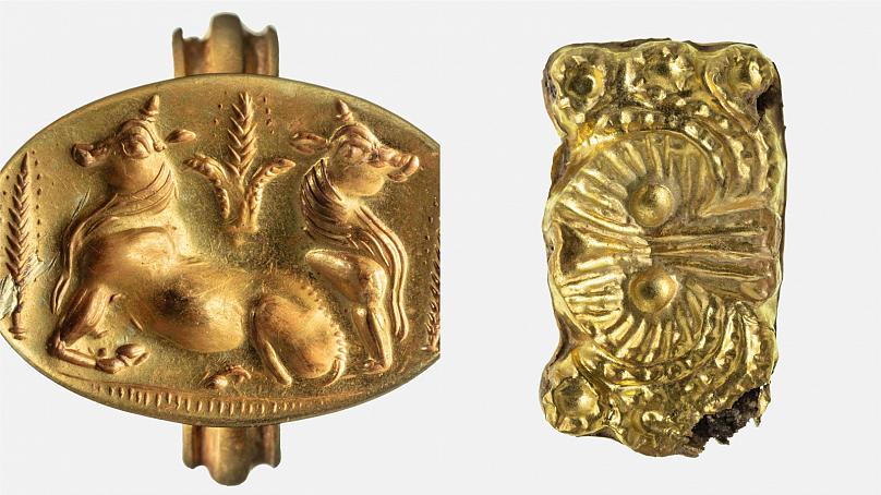 Researchers from the University of Cincinnati made the discovery while searching the area near to the grave of the so-called Griffin Warrior, which was found in 2015.It has taken archaeologists 18 months to excavate the two beehive-shaped tombs, which they said were littered with gold flakes which had decorated the walls. Among the treasures uncovered was a gold ring depicting two bulls flanked by sheaves of grain.