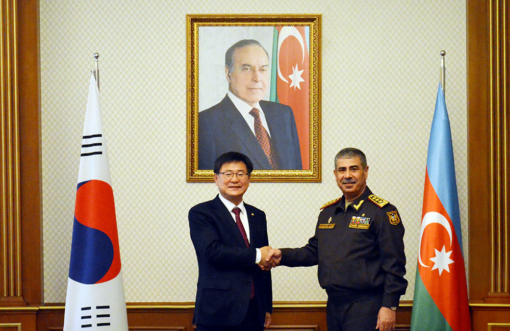The Minister of Defense of the Republic of Azerbaijan, Colonel General Zakir Hasanov, met with a delegation led by a member of the National Assembly of the Republic of Korea, Mr. Lee Hunseung.