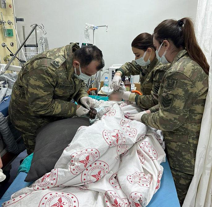Our military doctors are actively involved in receiving, registering, sorting, operating and sending to other relevant medical institutions in coordination with the employees of the Ministry of Health of Turkey in the field hospital.