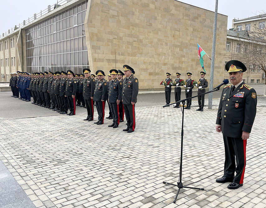 First, flowers were laid at the bust of the National Leader Heydar Aliyev in the territory of the military institute and tribute was paid to his memory.