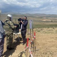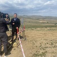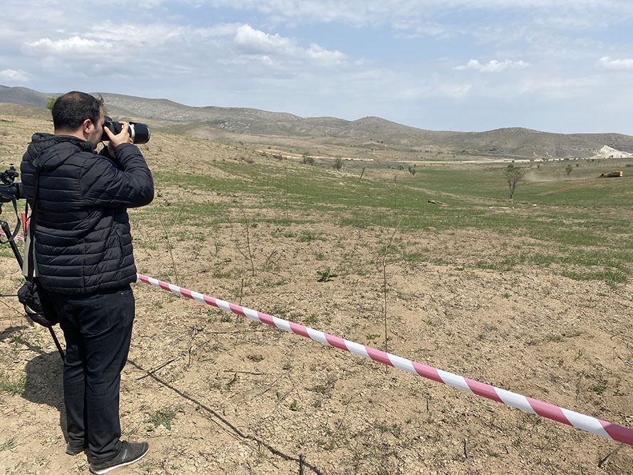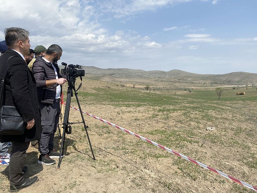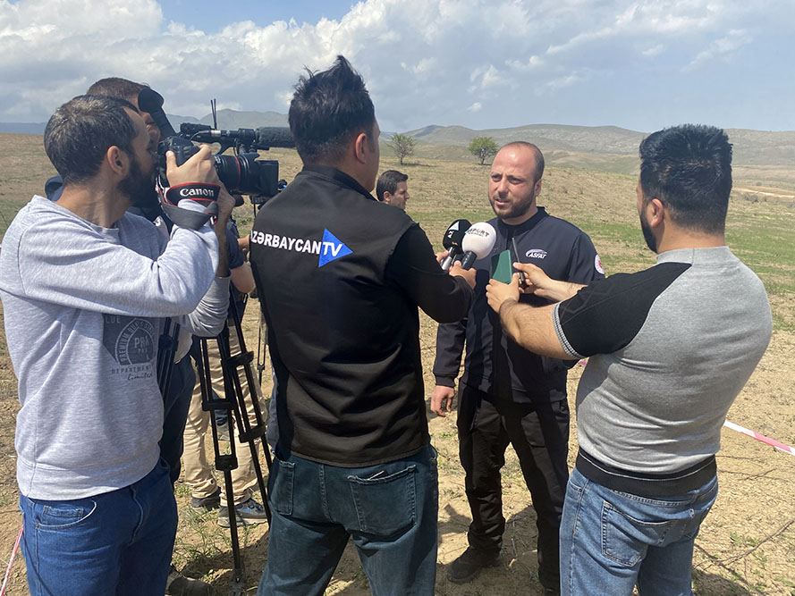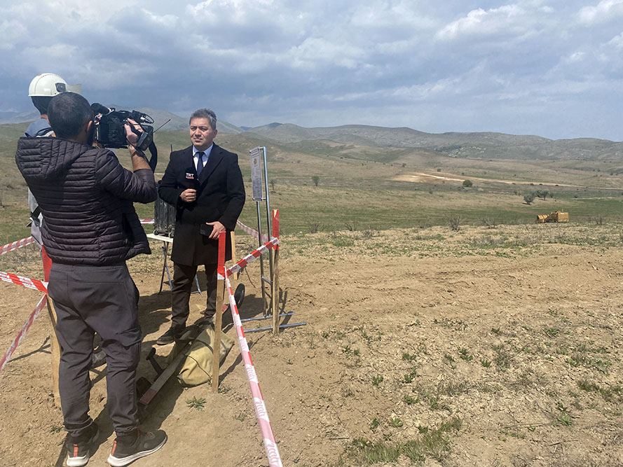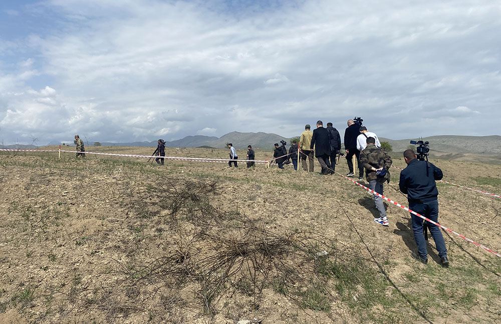 During the visit, journalists followed the process of demining the liberated territories and practical use of Mechanical Mine Clearing Equipment (MEMATT) manufactured by ASFAT of the Turkish Ministry of National Defense in Türkiye.