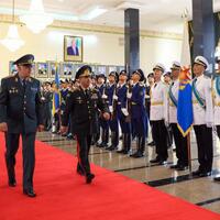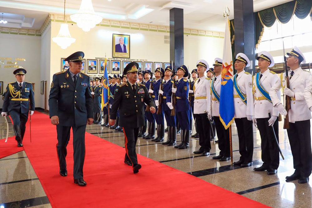 The ministers passed along the guard of honor, the national anthems of Azerbaijan and Kazakhstan were performed and Colonel General Hasanov signed the "Book of Honor" in accordance with the protocol.