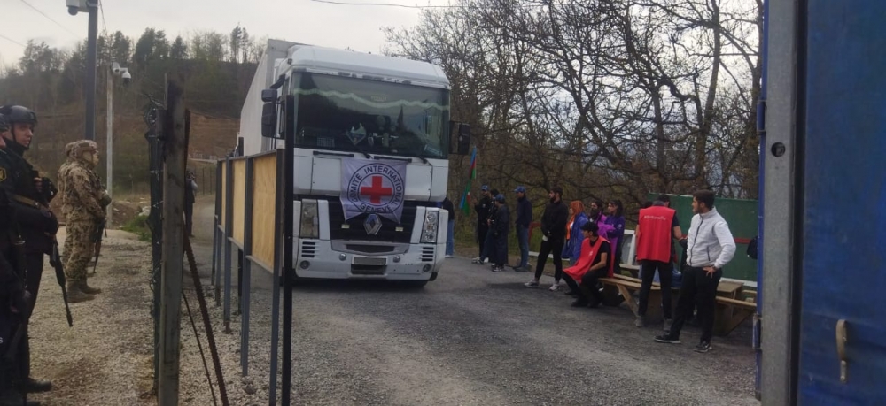 The vehicles of the International Committee of the Red Cross (ICRC) passed freely through the peaceful protest area on the Lachin-Khankendi road.