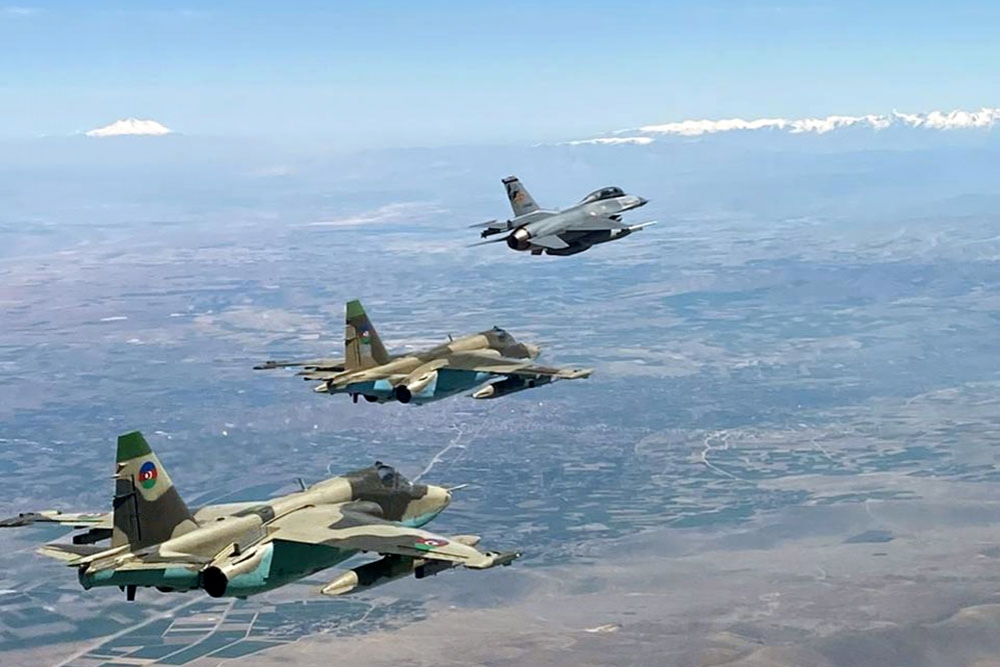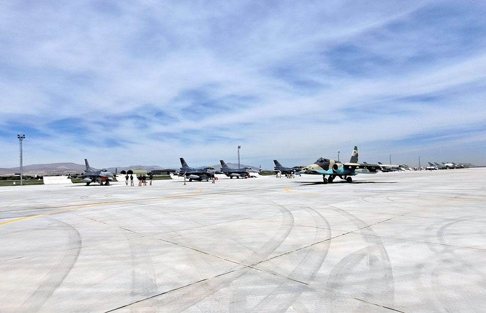 After gaining air superiority, Azerbaijani aircraft with various combat aircraft, entered the imaginary enemy’s airspace, performed combat maneuvers at high altitudes, and fulfilled tasks on destroying ground targets of the opposing side.