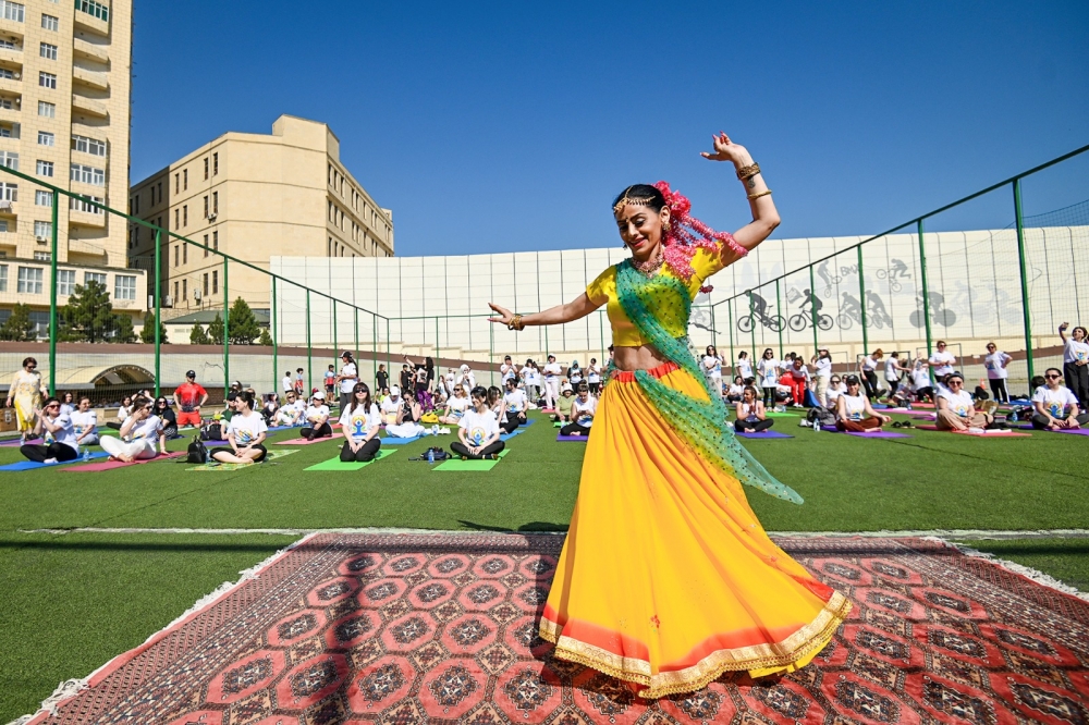 The yoga session was led by renowned instructor Elchin Guliyev, whose expert guidance was highly appreciated by all participants. To add a cultural flavour to the event, Solmaz Asgarova performed captivating Indian and Azerbaijani dances post the yoga session. All participants were served tasty Indian snacks.