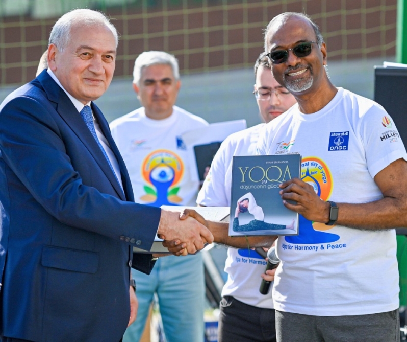 Esteemed attendees included Ambassador of India in Azerbaijan Sridharan Madhusudhanan, Counselor of the Minister of Defense Industry of Azerbaijan Alibaba Aliyev, Director of the Republican Velodrome Tamerlan Salahov as well as officials of the Azerbaijan Cycling Federation and yoga club members.