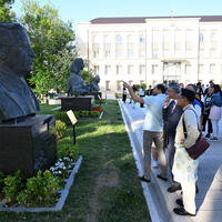 The visitors viewed the shot monuments of Azerbaijan’s prominent art personalities such as Khurshidbanu Natavan, Bulbul and Uzeyir Hajibayli at the Central Square of Shusha.