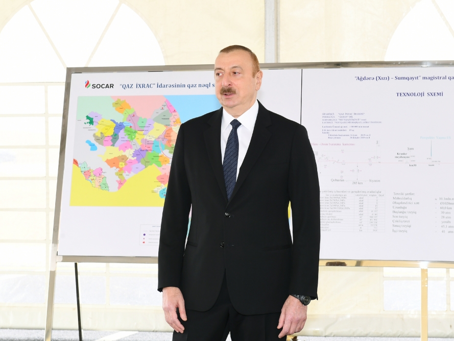 President Ilham Aliyev attended opening of main gas pipeline laid to Sumgayit
