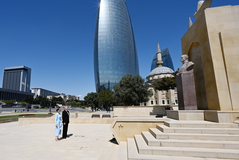 President of the Republic of Azerbaijan Ilham Aliyev and first lady Mehriban Aliyeva visited the grave of twice Hero of the Soviet Union Hazi Aslanov, put flowers at his statue and paid tribute to all Azerbaijanis killed during the war.