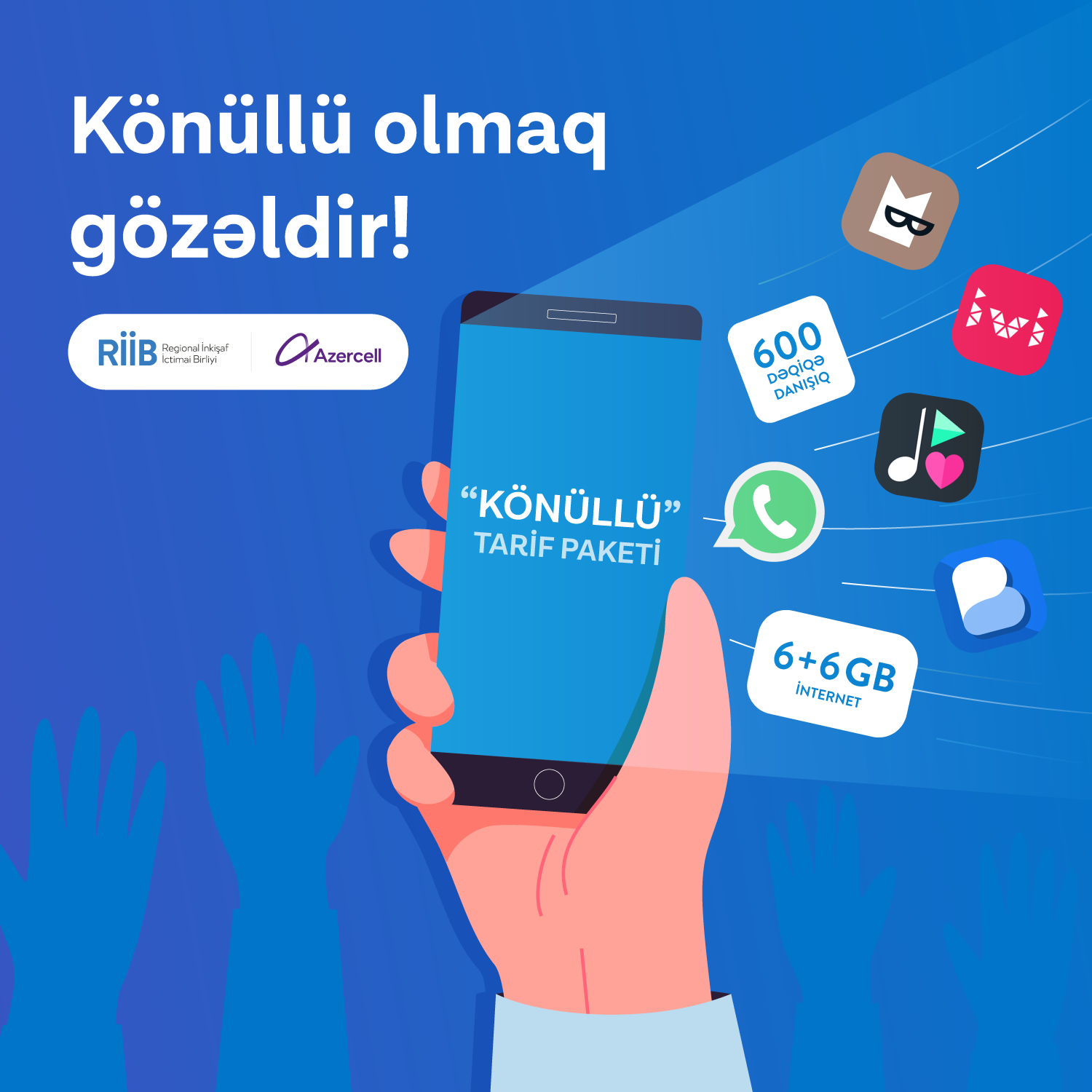 The country's leading mobile operator Azercell Telecom always supports initiatives aimed at promoting youth development and implements various projects in this direction. We believe that this offer, prepared by Azercell as a special gift for the "Year of Volunteers", will contribute to the appreciation of the volunteers and stimulate this kind of activity.
