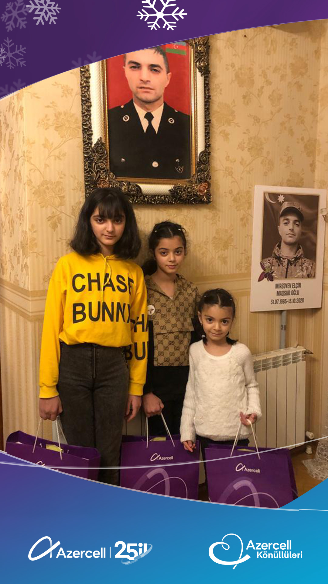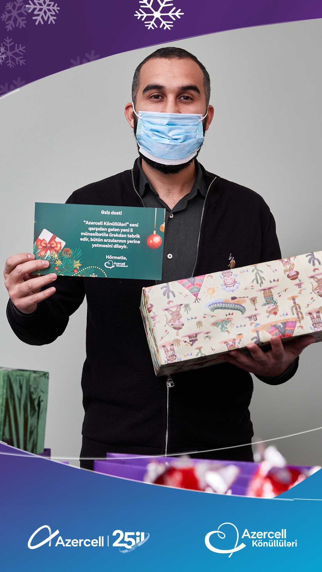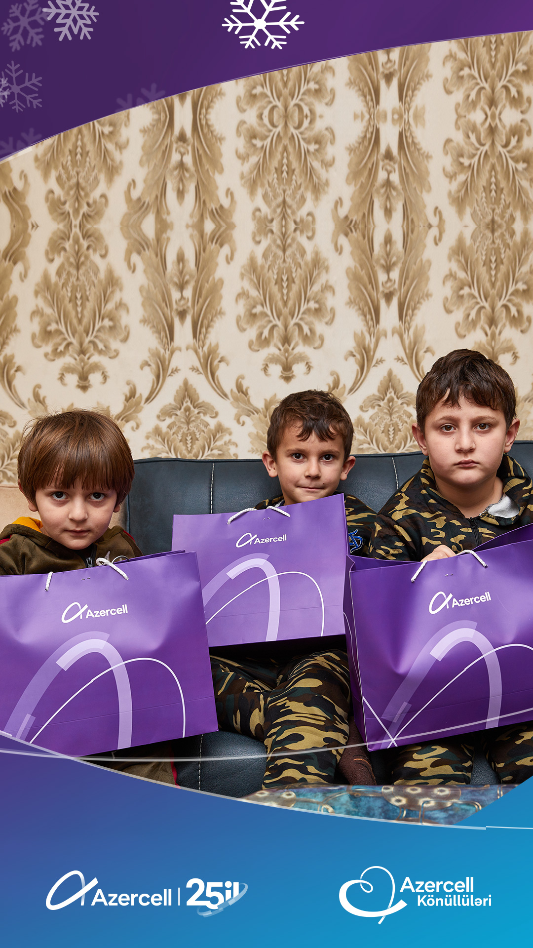 Azercell Telecom, whichcelebratedthe 25th anniversary of itsactivity, fromthefirstyears of itsexistence, hasformed a largecharityteam"Azercell Volunteers",consisting of Azercell employees.Thisyear, as inpreviousyears, “Azercell Volunteers”havelaunchedanothercharityinitiativeforchildren on the occasion of the Solidarity Day of World Azerbaijanis and the New Year. As part of thecampaign "Meet the New Year with giftsfromvolunteers", theyvisitedthefamilies of martyrs and veterans of the Second Patriotic War, as well as low-incomefamilies, and broughtjoy by presenting holiday gifts to their children.