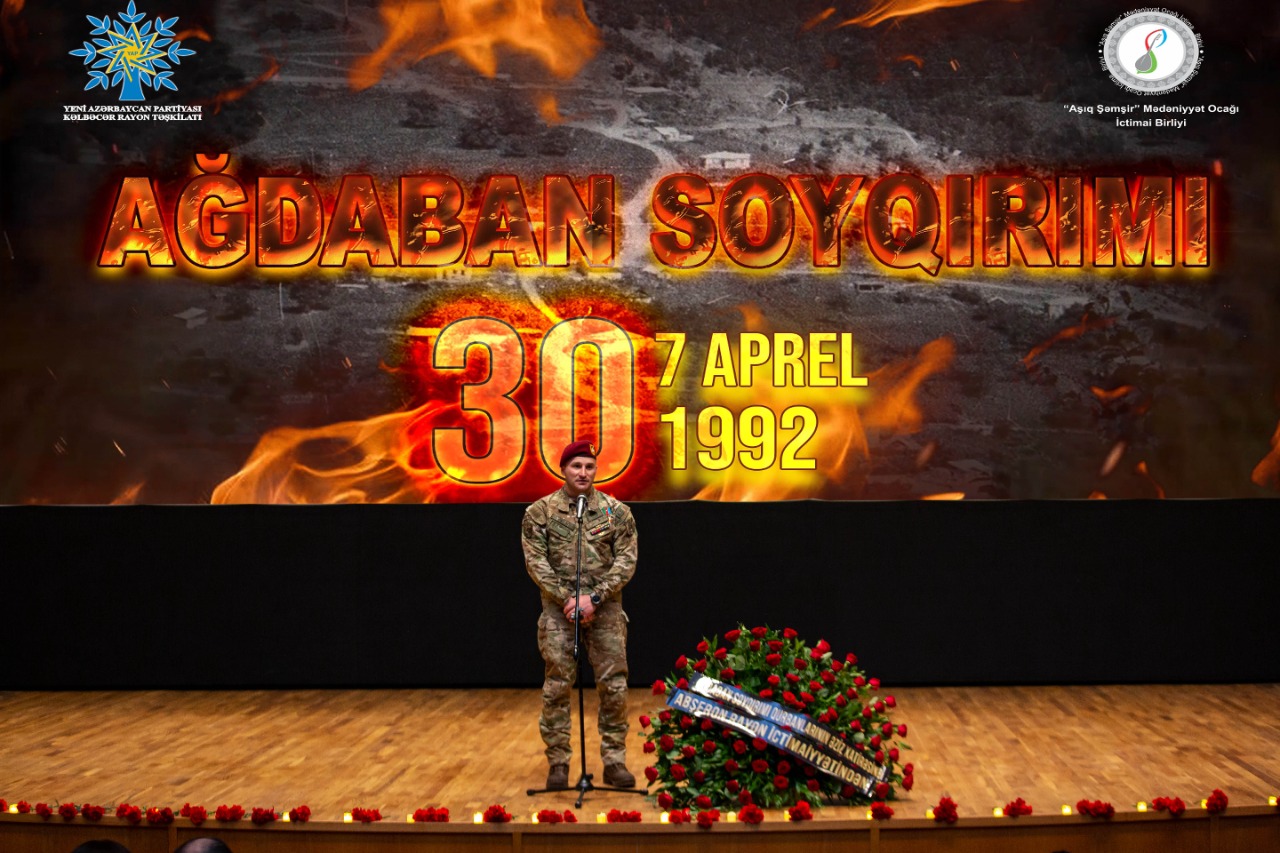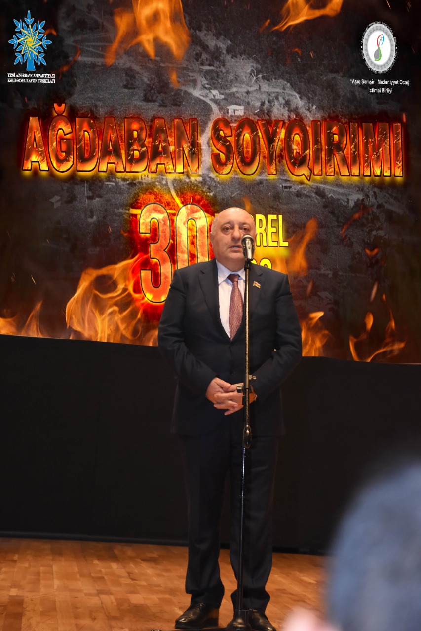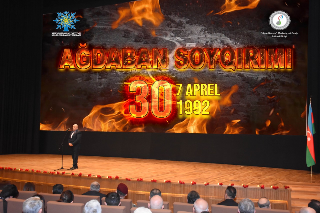 A commemorative event dedicated to the 30th anniversary of the Aghdaban Genocide was held at the Nizami Cinema Center jointly organized by the New Azerbaijan Party's Kalbajar District Organization and the Ashig Shamshir Cultural Center Public Union.