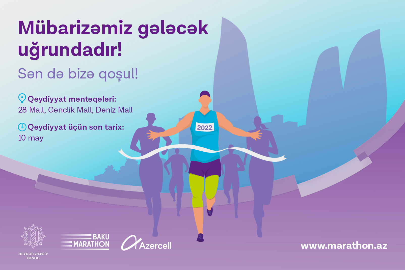 To participate in the competition, it is required to register by applying to the special points installed in "Ganjlik Mall", "28 Mall" and "Deniz Mall" or on the website www.marathon.az (detailed information: www.marathon.az). The final registration date is set for May 10, 2022.