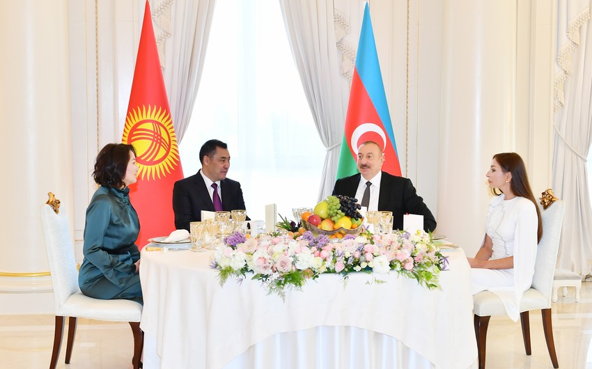 An official dinner has been hosted on behalf of Azerbaijani President Ilham Aliyev and his wife Mehriban Aliyeva in honor of Kyrgyz President Sadyr Japarov and his wife Aigul Japarova, SİA informs citing the presidential press service.