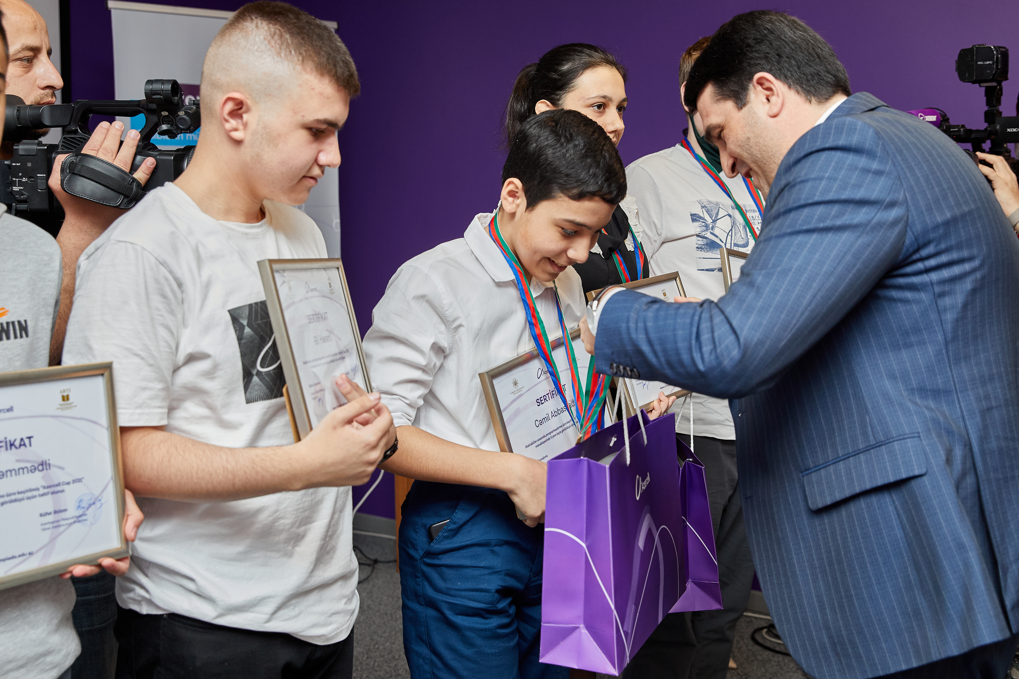 "AZERCELL CUP" winners were awarded certificates and valuable prizes by the leading mobile operator of the country at the meeting hold on April 27, 2022. The tournament organized in cooperation between “Azercell Telecom” LLC and the Ministry of Education of the Republic of Azerbaijan was attended by more than 300 students of 5-7th grades and only 21 participants with special knowledge in Informatics won 1st, 2nd, and 3rd places.