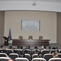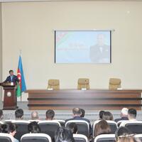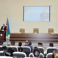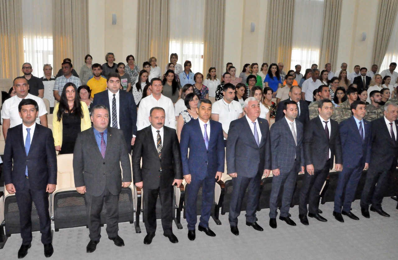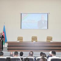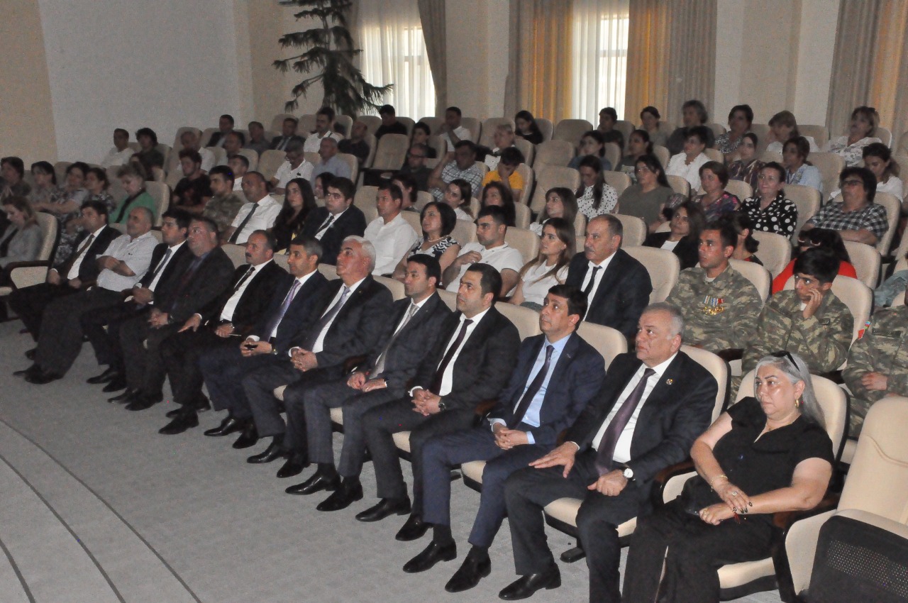 The event began with a wreath-laying ceremony in front of the bust of Heydar Aliyev in the lobby of the District Executive Power. First, our national anthem was played, and the memory of the National Leader and our martyrs was commemorated with a minute of silence. A film dedicated to the life and activity of National Leader Heydar Aliyev was then shown.