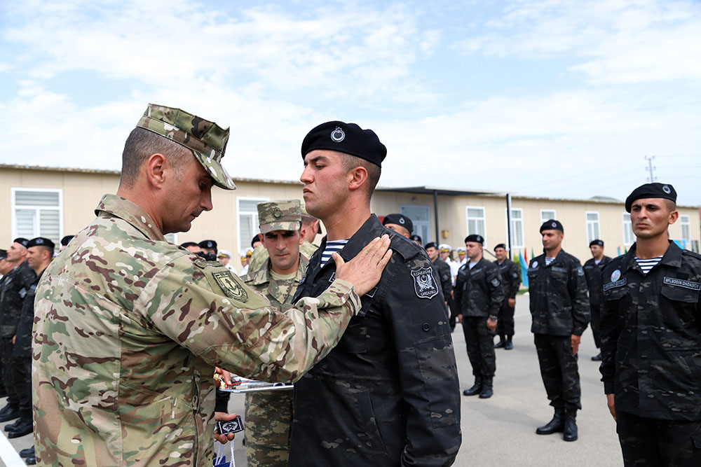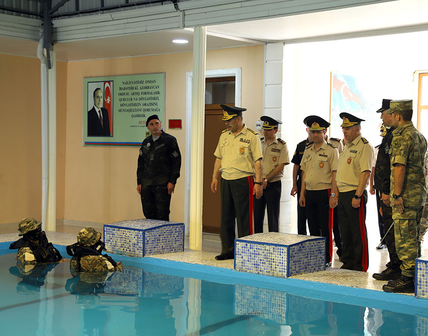 The Minister of Defense, Colonel General Zakir Hasanov, attended the next graduation ceremony of the Marines Commando Basic Courses held on 15 June - National Salvation Day in the military unit of the Azerbaijan Naval Forces.