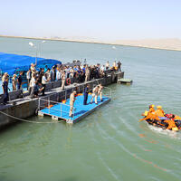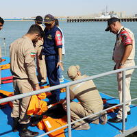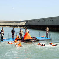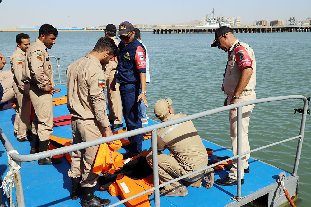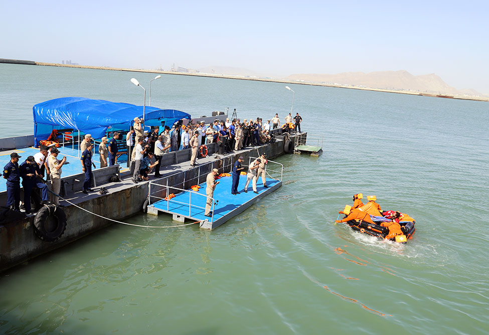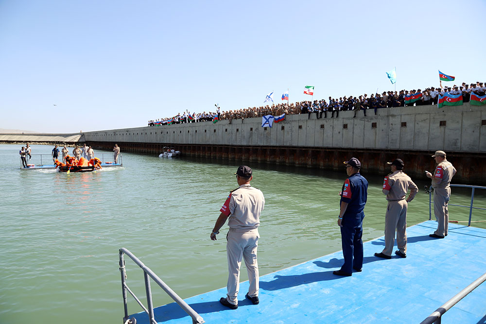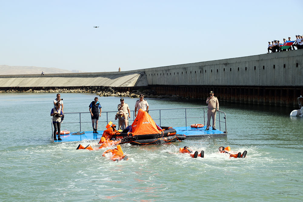 The participating teams of the "Sea Cup" contest, organized in Azerbaijan within the framework of the "International Army Games-2022" competitions, fulfilled the task of "The usage of rescue equipment" in the "Struggle for survivability of the ship and the rescue training" stage.