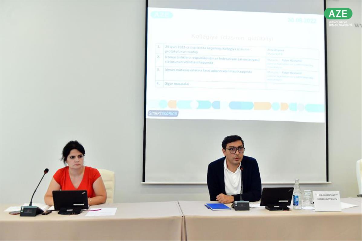 At the collegium meeting, a decision was also made to award Namig Rafiq oglu Heybatova and Elchin Nazim oglu Hasanov "Honored coach of the Republic of Azerbaijan", Lamiya Rovshan gizi Valiyeva and Raman Sergeevich Salei "Honored master of sports of the Republic of Azerbaijan".