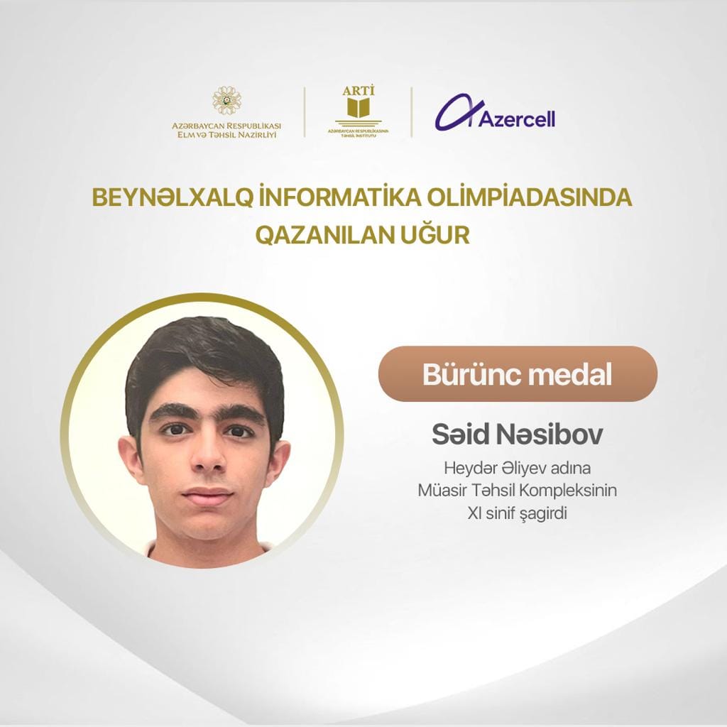 Azerbaijan's national team on informatics consisting of schoolchildrentook part in the 34th International Olympiad in Informatics (IOI 2022) held in the Special Region of Jogyakarta, Indonesia. Said Nasibov, a student of the 11th grade of the Modern Education Complex named after Heydar Aliyev, won a bronze medal in the Olympiad joined by more than 349 students from 88 countries.